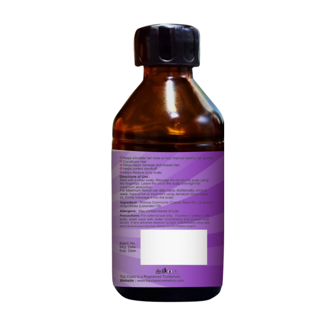 Introducing Top Class Lavender Oil, a powerful hair treatment formulated with 100% pure Lavender oil. Experience healthier and more nourished hair with the natural benefits of Lavender. Say goodbye to dry, damaged hair and hello to a luscious, vibrant mane.